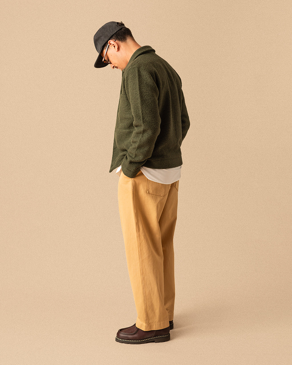 Duke Pants in HBT Cotton – Finally, rounding out the collection are two versions of Universal Works’ Duke Pants, also made from HBT cotton. These relaxed-fit trousers offer comfort and durability, making them ideal for everyday wear.