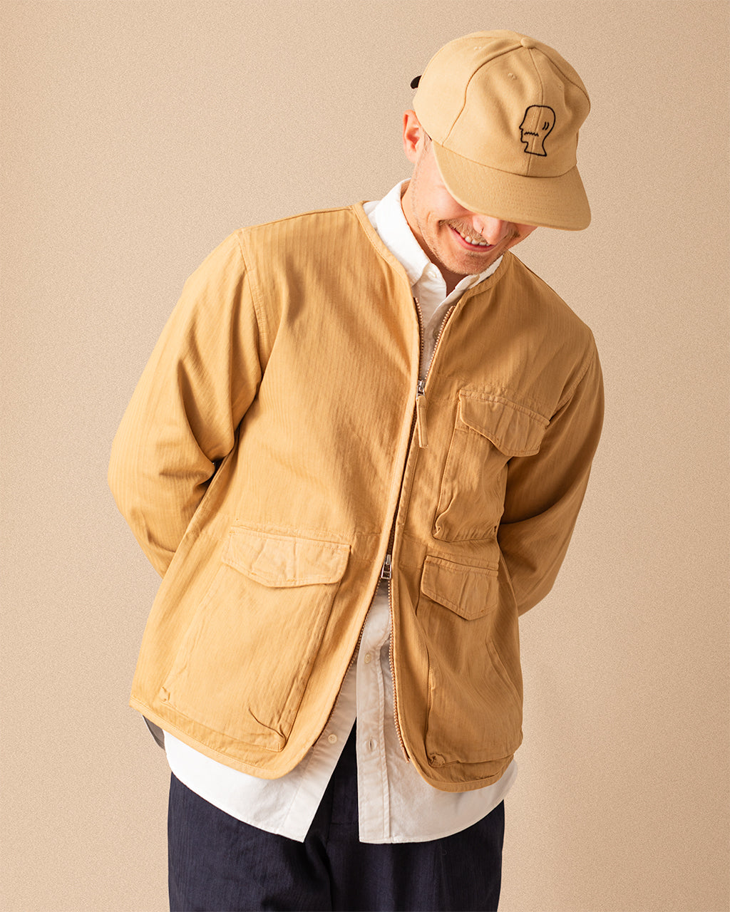 Parachute Jackets in HBT Cotton – The collection also features two Parachute Jackets, crafted from HBT (herringbone twill) cotton. Known for its durability and distinctive texture, HBT cotton provides a rugged, workwear-inspired look that’s both stylish and functional.