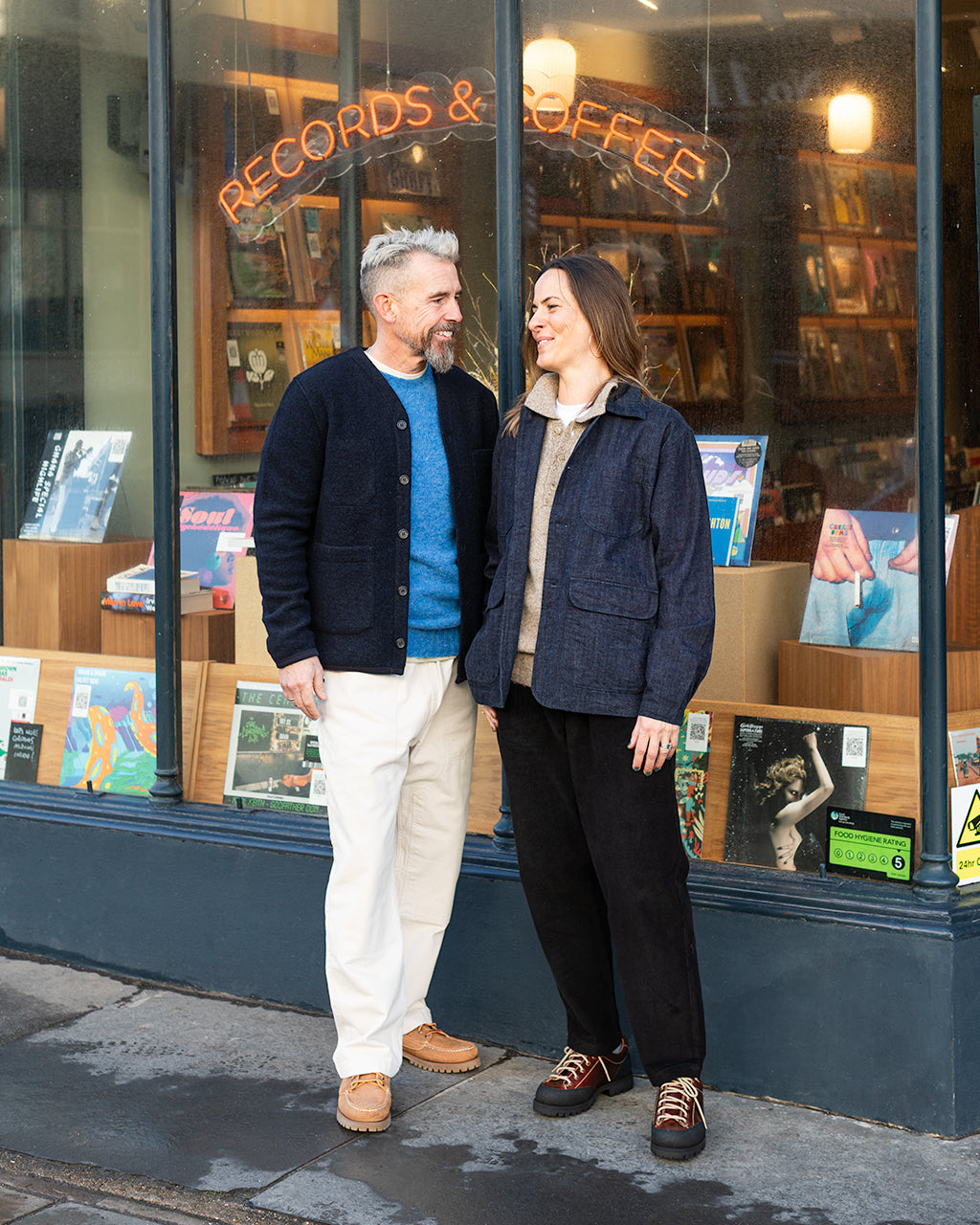 We visited Sarah and Lawrence in their Hove shop one quiet morning before they opened, styled them in a few of our favourite pieces, and spoke about music, community, identity, and what it means to build an independent business that people actually want to return to. Their passion for what they do is infectious; the kind of energy that makes Brighton’s independent scene so special.