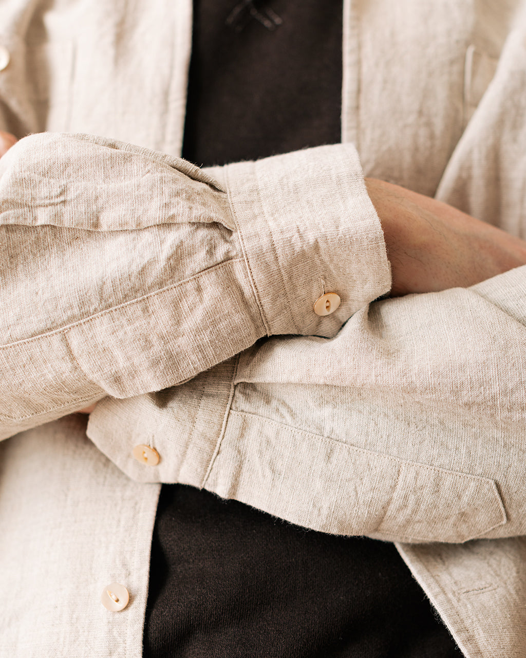 Unlike modern mass production, Taiga Takahashi focuses on traditional Japanese craftsmanship. The brand uses natural hand-dyeing techniques that have been passed down for generations and weaves fabrics on old power looms - machines that have mostly disappeared but create a distinctive texture and depth. Many pieces are cut and sewn by skilled artisans, ensuring each garment carries the same level of detail and durability as the originals that inspired them.