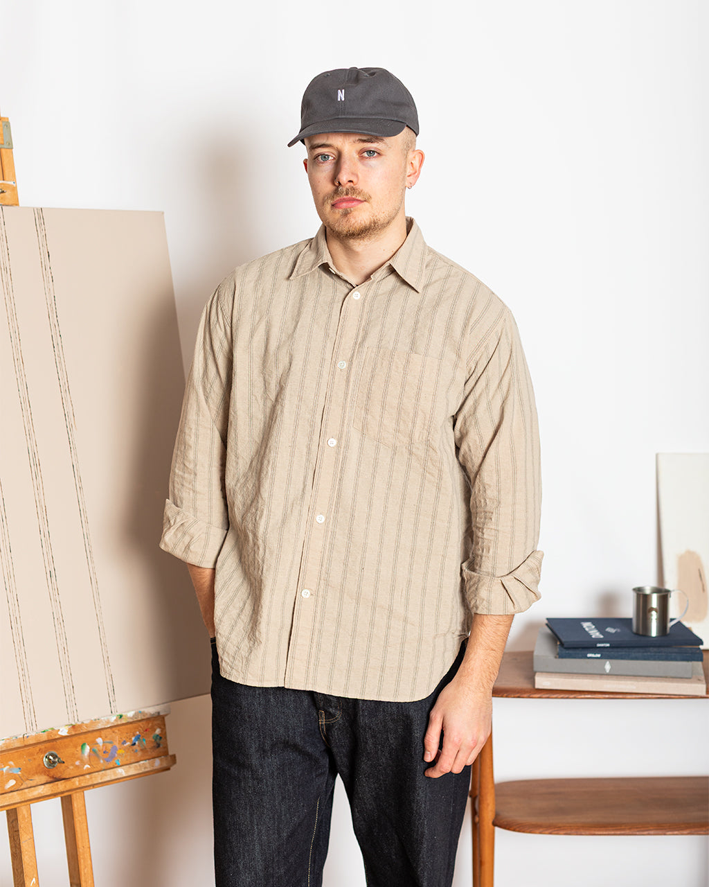 The Espevik has always been a standout for its relaxed, easy silhouette and subtle textured stripe. For this collaboration, we kept things simple and focused on what already works: a warm, neutral tone, a soft drape, and that signature Norse balance of Scandinavian minimalism and everyday wearability.