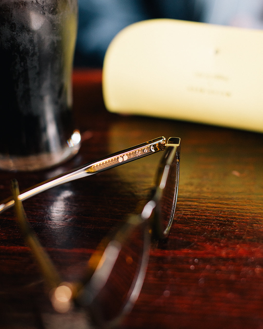 Based around a vintage 1940's frame found in Paris, the Pino features a classic keyhole bridge and angled brow alongside dual branding.