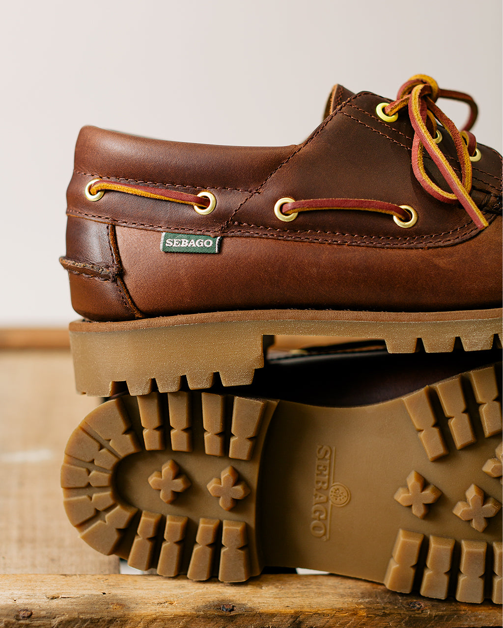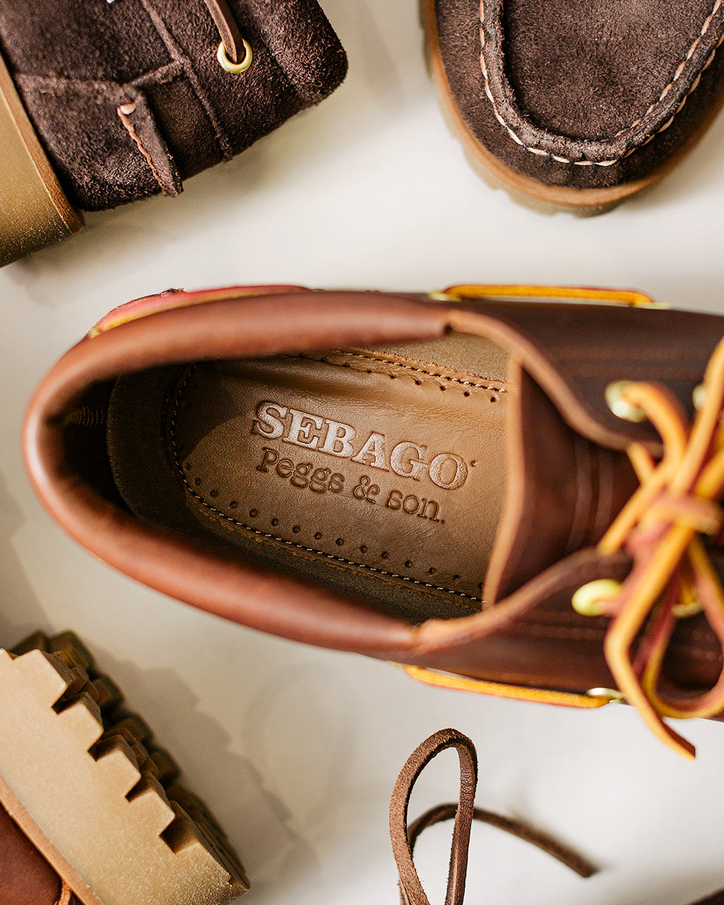 At Peggs & son, collaborations are an opportunity to blend heritage craftsmanship with our own design ethos. This time, we’ve teamed up with Sebago, the masters of deck shoe design, to offer two exclusive iterations of their iconic Acadia shoe.
