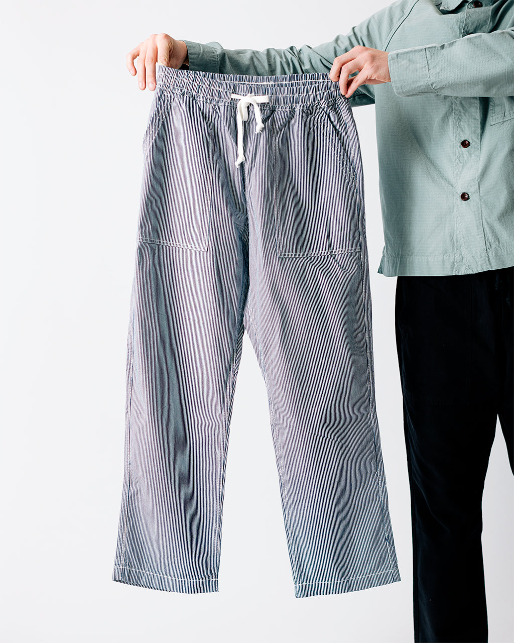 The brand’s journey started with a simple concept: durable, elasticated-waist trousers built to withstand the pressures of a professional kitchen. The success of their now-iconic Chef Pants led to a full range of garments that retain that same DNA - simple, functional silhouettes inspired by classic workwear and built for everyday wear. With a strong emphasis on organic and recycled cottons, each piece reflects the brand’s commitment to sustainable materials and its South London roots.