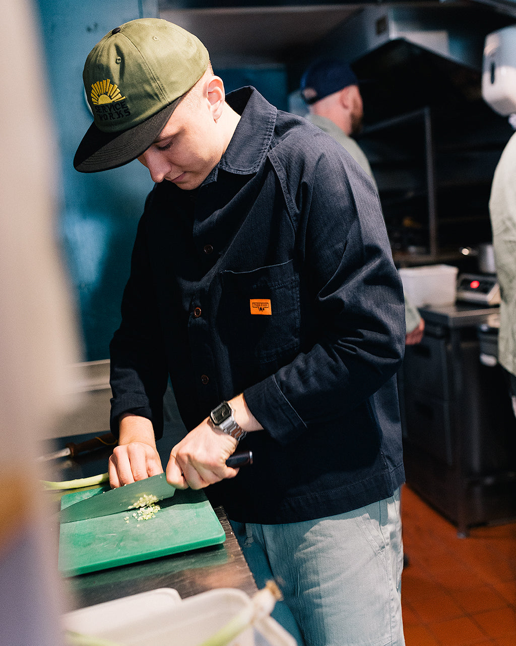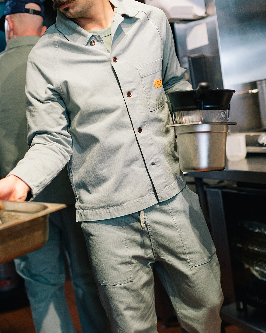 We've picked out three of our favourite silhouettes from Service Works' extensive collection and have put our spin on them, cutting the styles from one of our favourite fabrics; Herringbone Twill. The collection features three different shapes; a Front of House Jacket, the classic Chef Pant and the Waiters Pant.