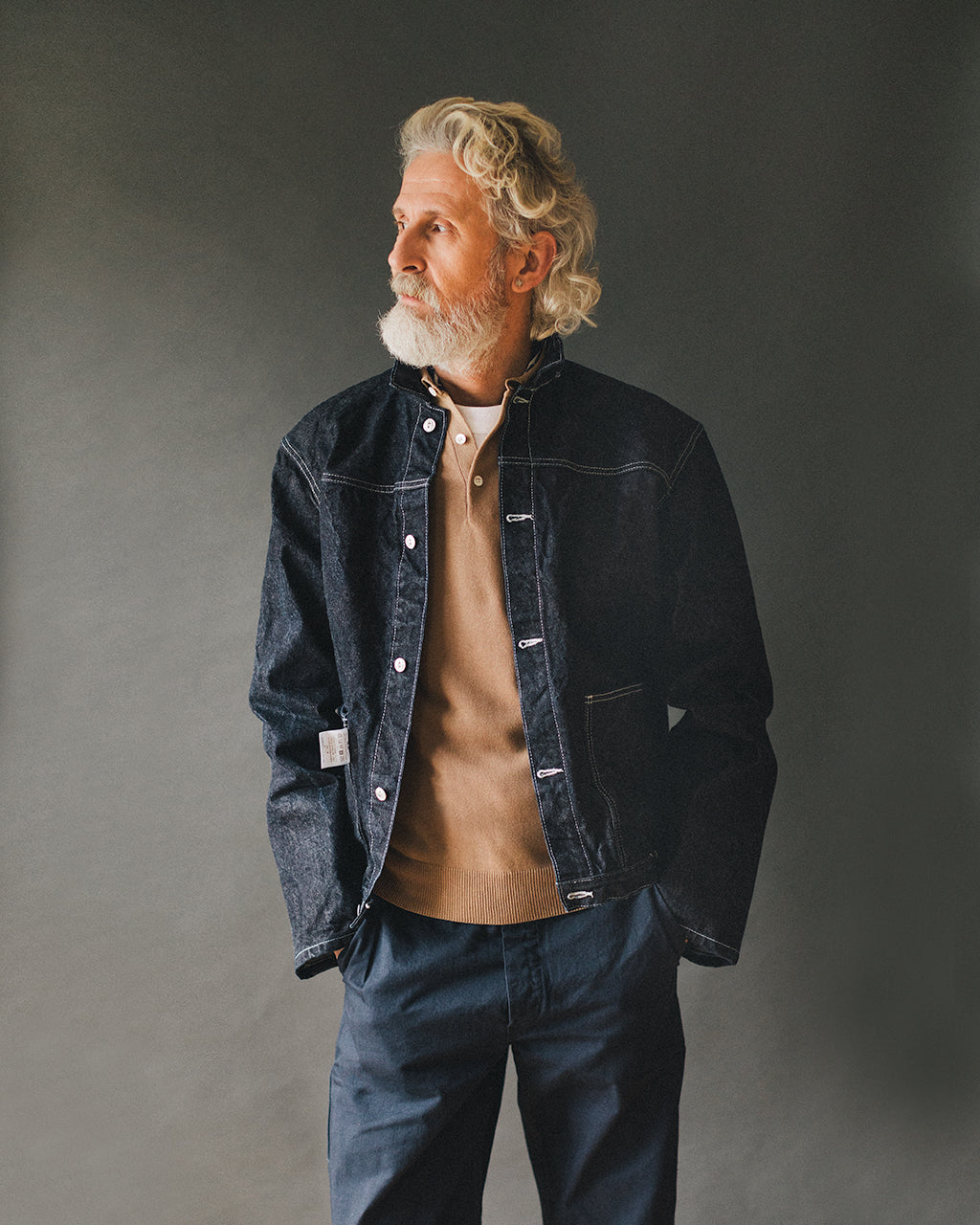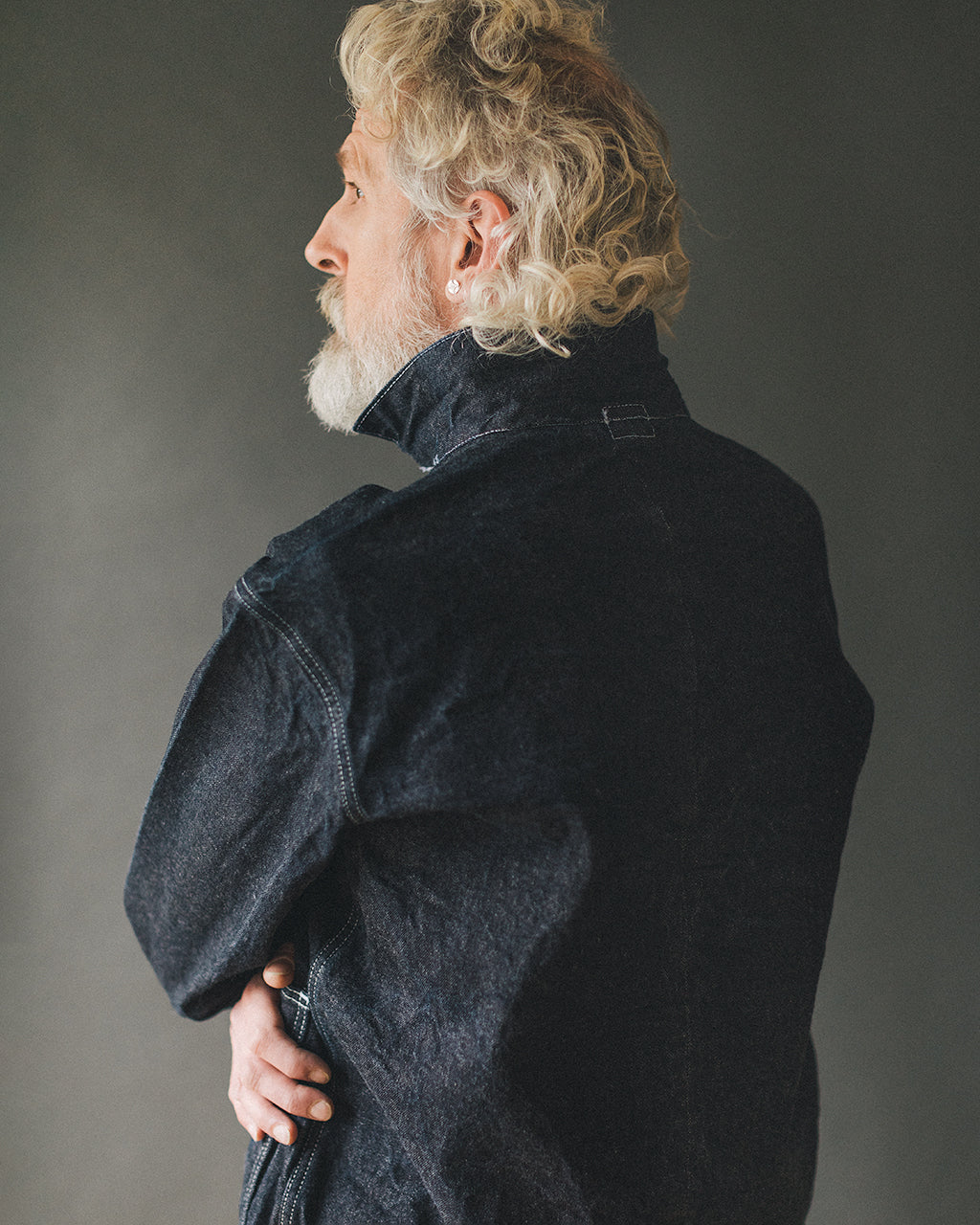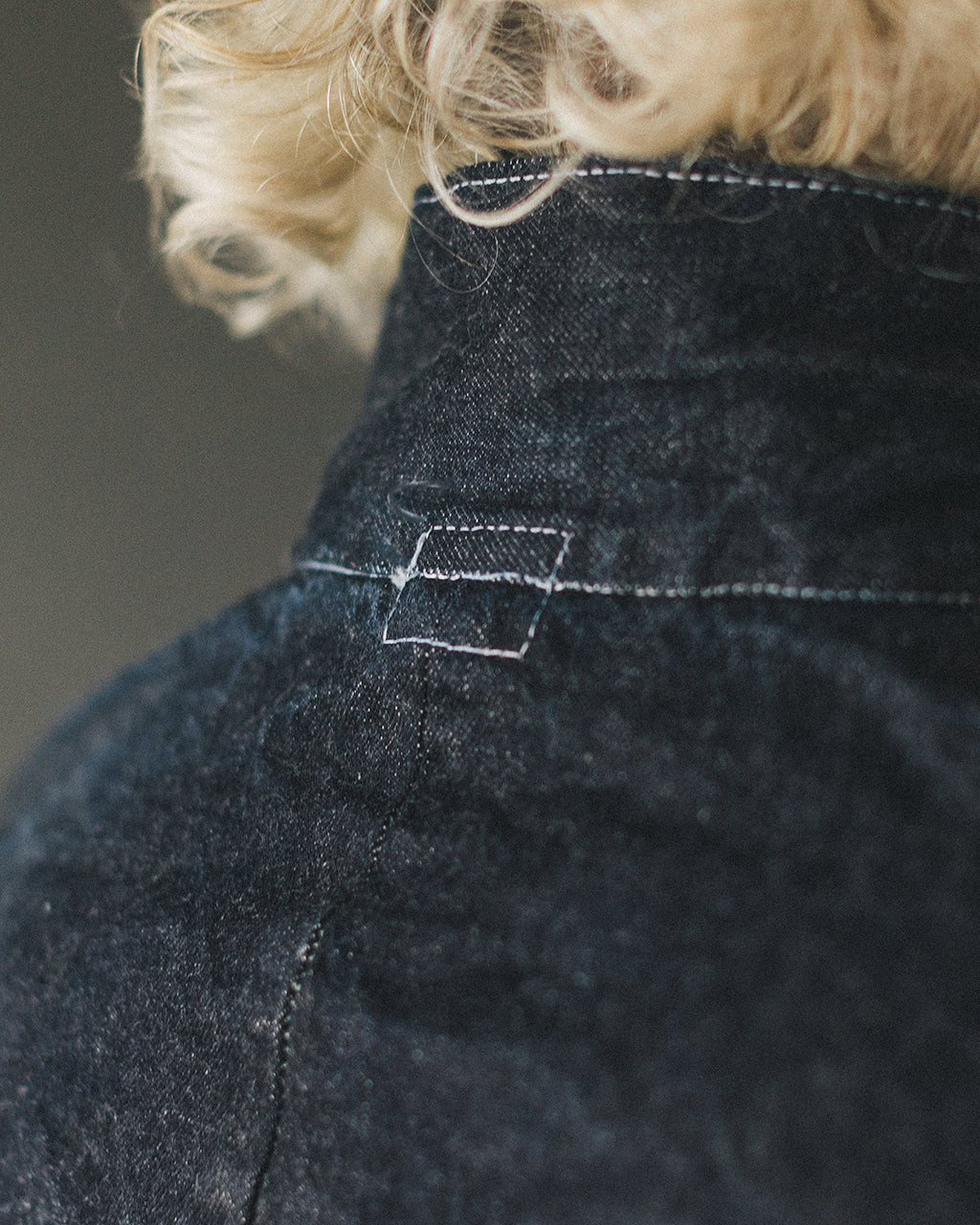 The Edited Jeans Jacket is a simplified version of the Type 901 Pleat Pocket Jeans Jacket, cut straight with a centre back seam. The back panels are brought up and over to the front, forming a smooth biased shoulder which wears particularly comfortably.