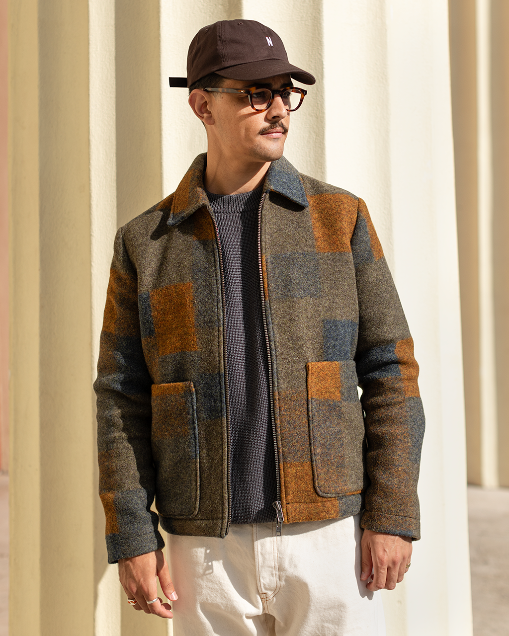 The Gael Jacket features a unique boxy fit and a chunky two-way YKK zipper, crafted from premium Italian yarn-dyed checkered fabric. Each jacket is one-of-a-kind, with subtle variations in the checkered pattern due to fabric alignment during the cutting process, ensuring your piece is truly unique.