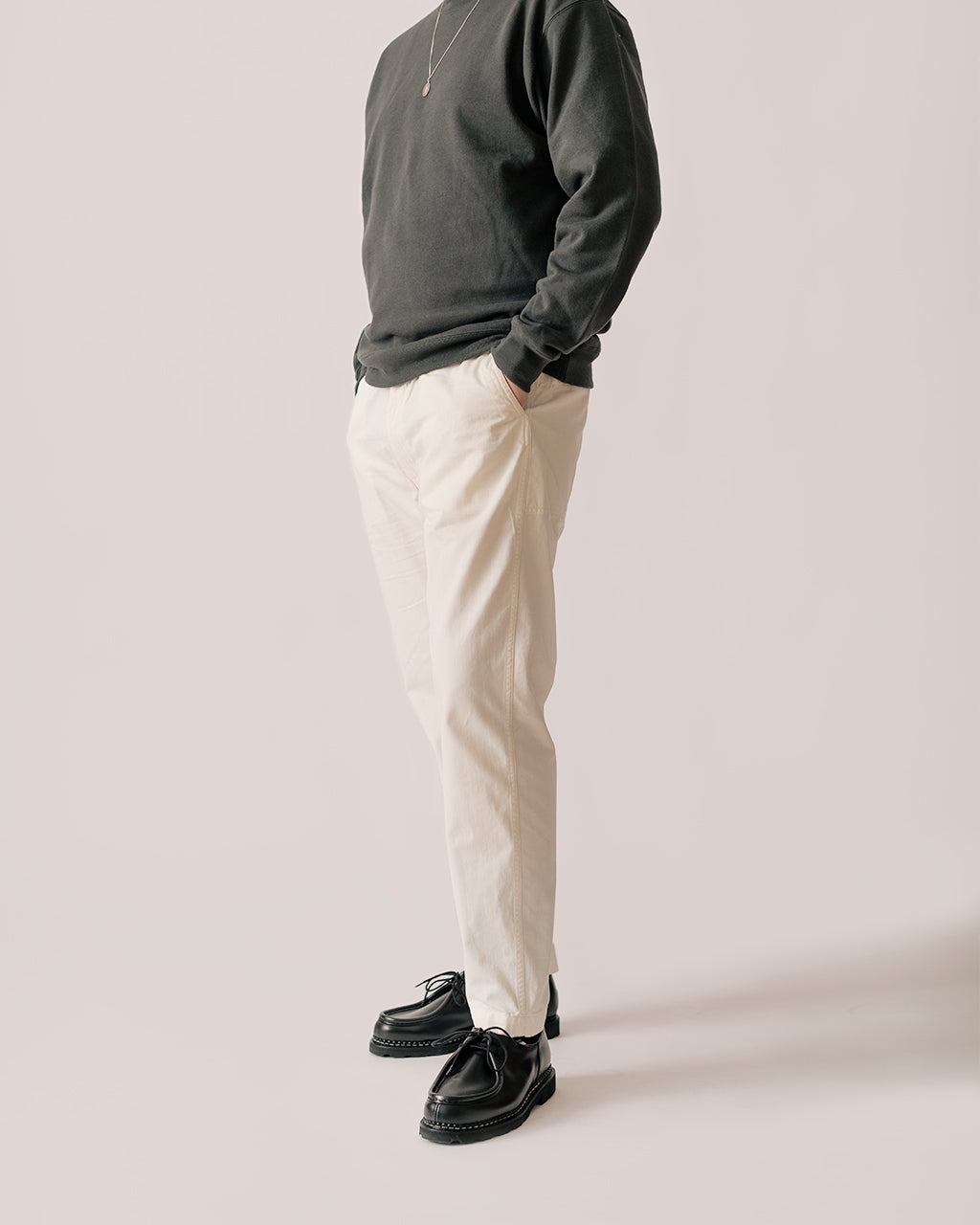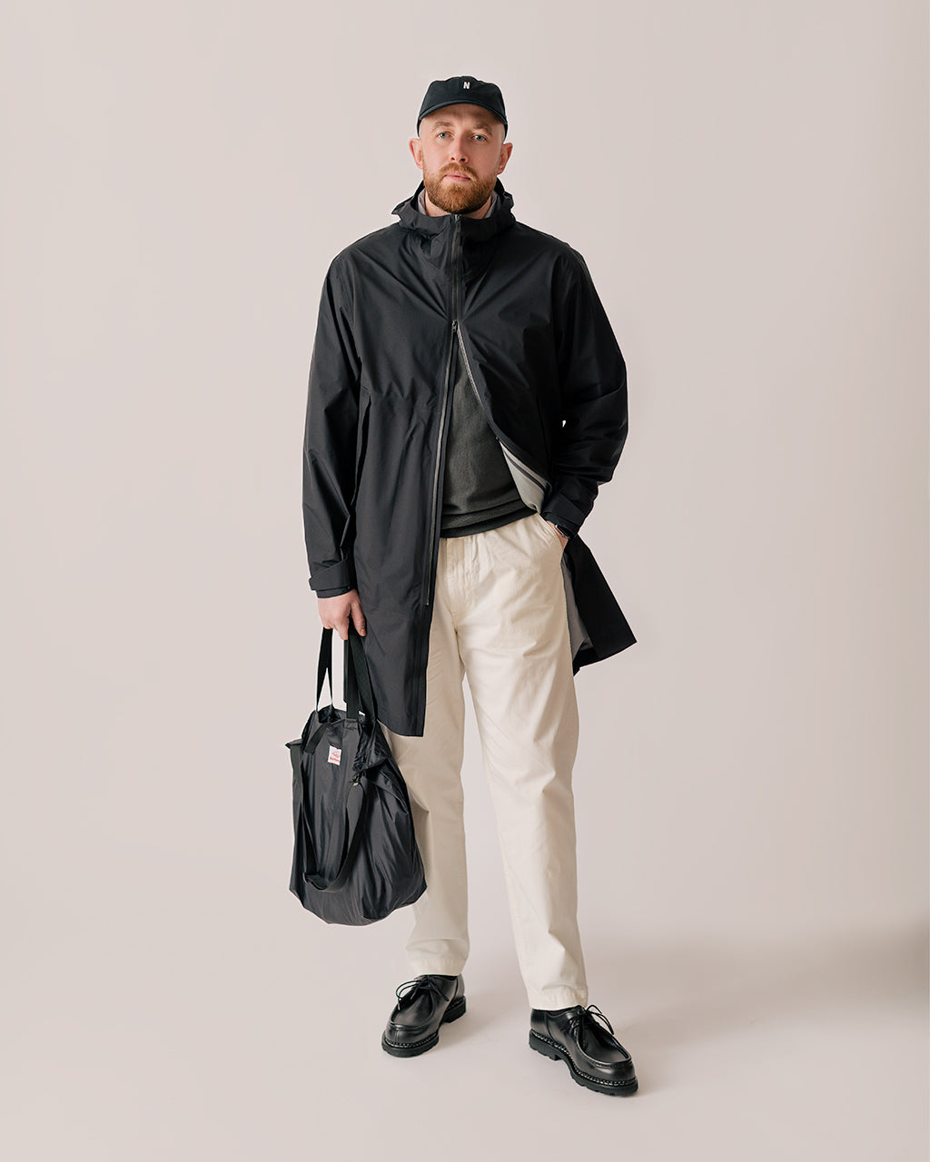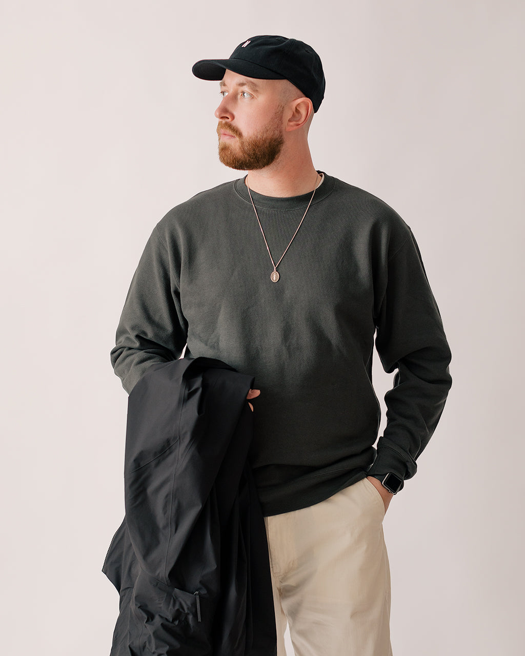 Model is 6'2", 44" chest, 34" waist and is wearing a size Large Jacket, Size XL Sweatshirt, Size Large T-Shirt and size 4 Trousers.