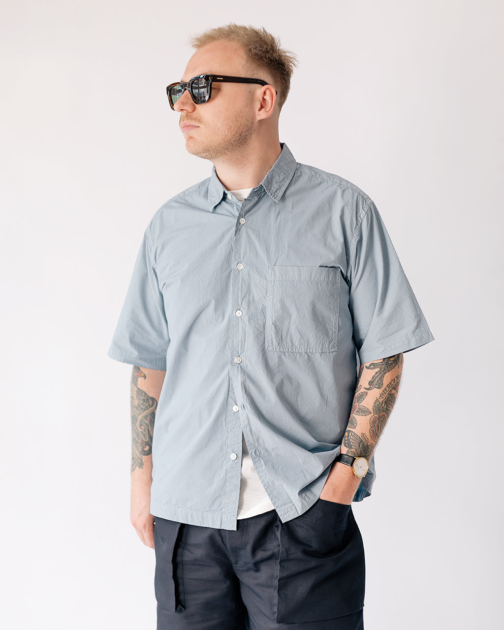 Model is 5'10", 42" chest, 32" waist and is wearing a size Medium Shirt, size 44 T-shirt and size 32 Shorts.