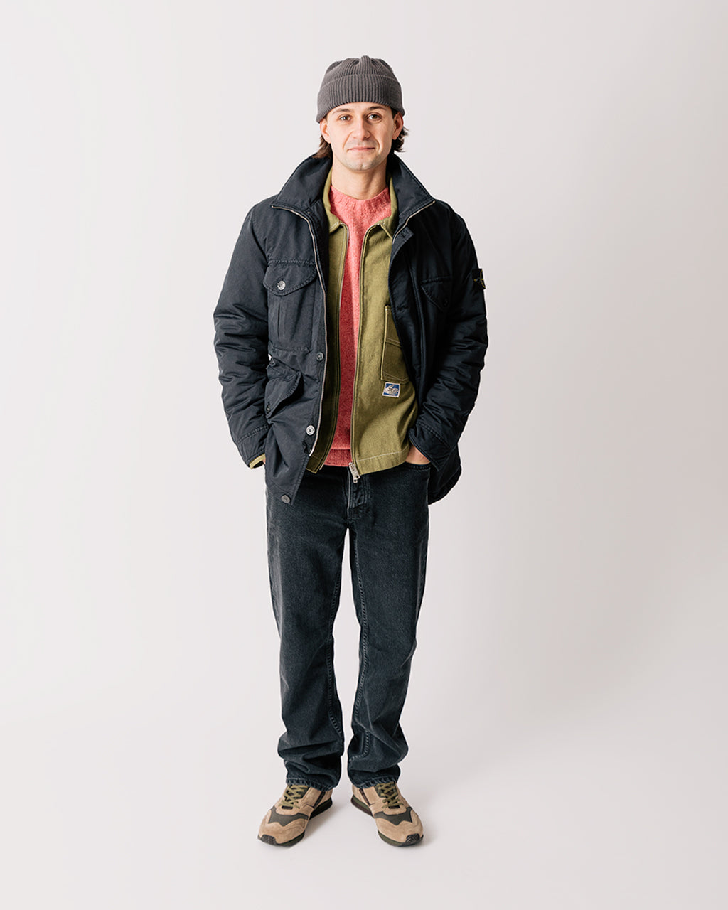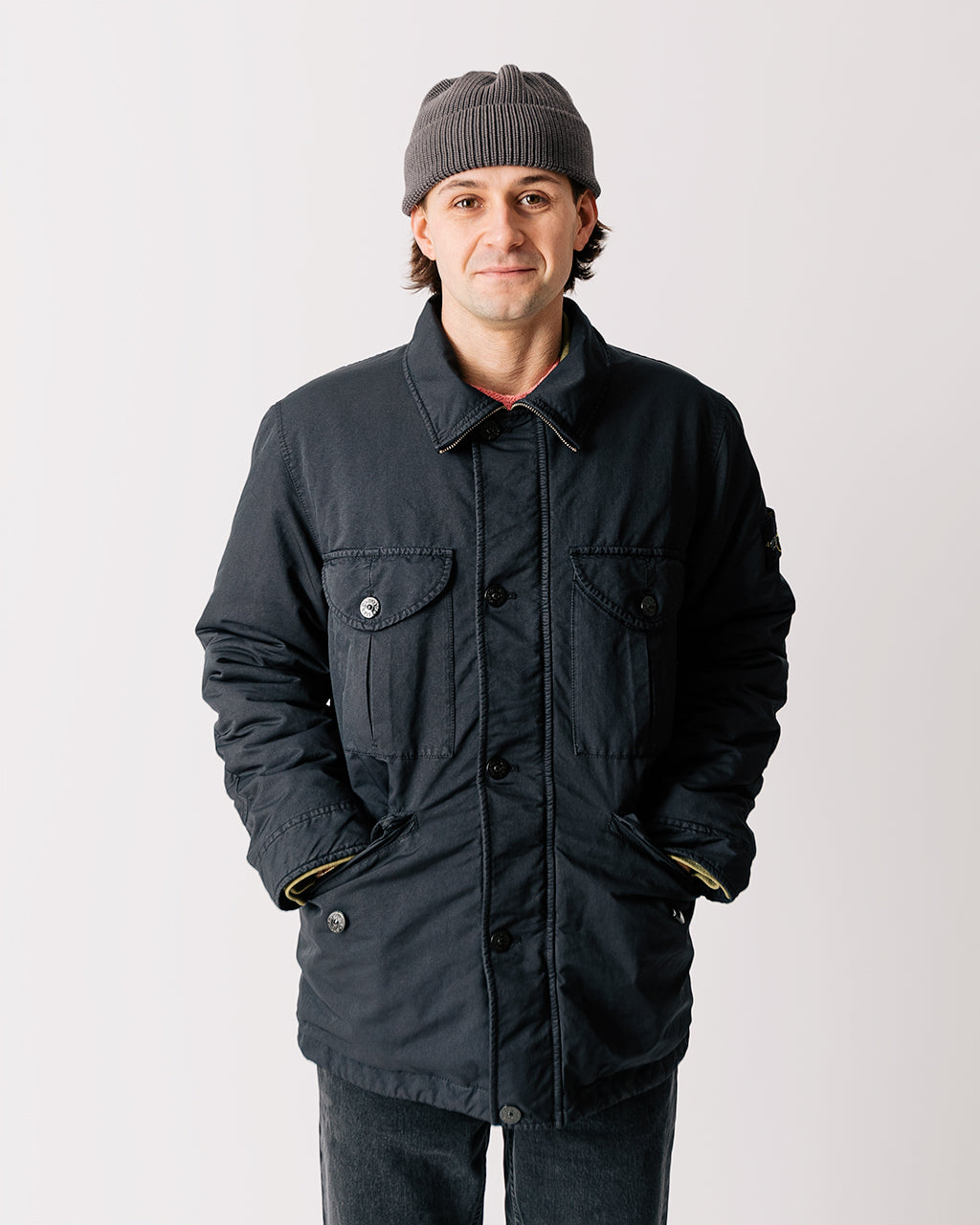 Model is 5'8", 40" chest, 30" waist and is wearing a size Medium.