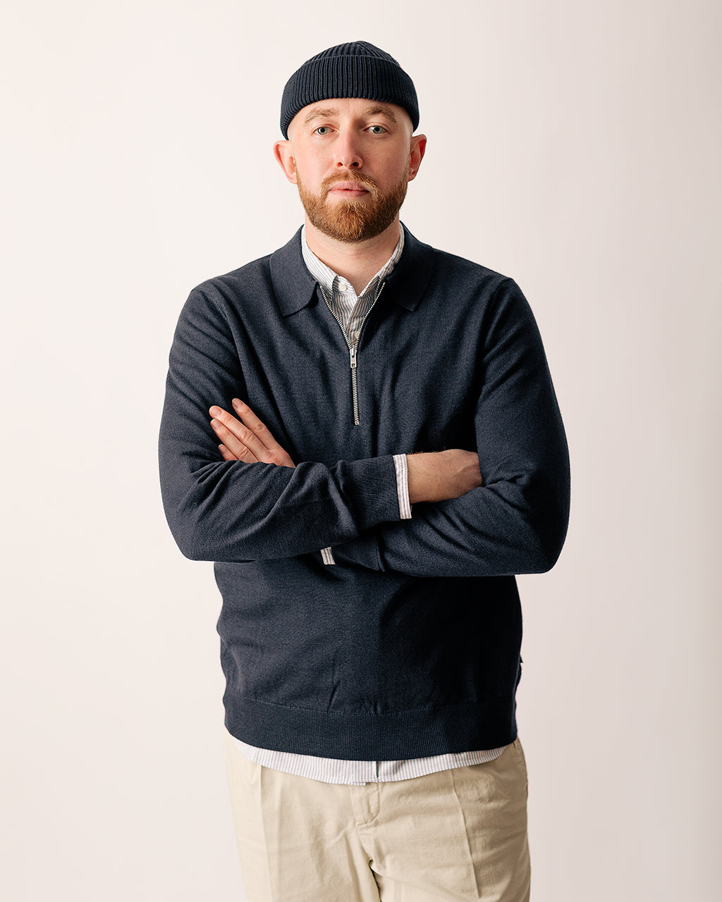 Model is 6'2", 44" chest, 34" waist and is wearing a size 40 Jacket, size Large Polo, size Large Shirt and size 50 Trousers.