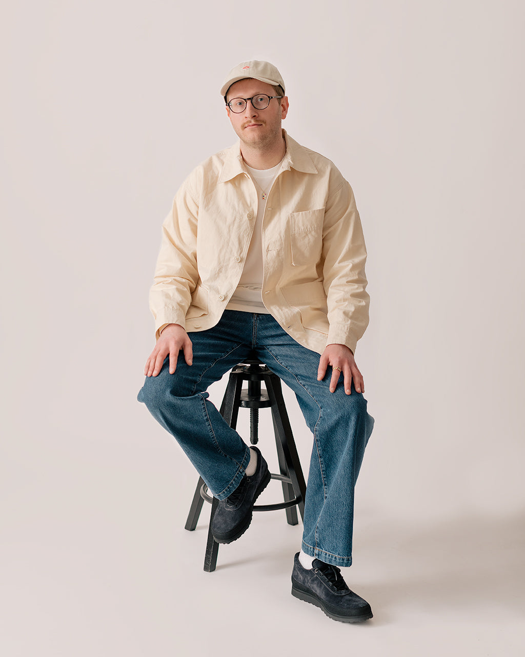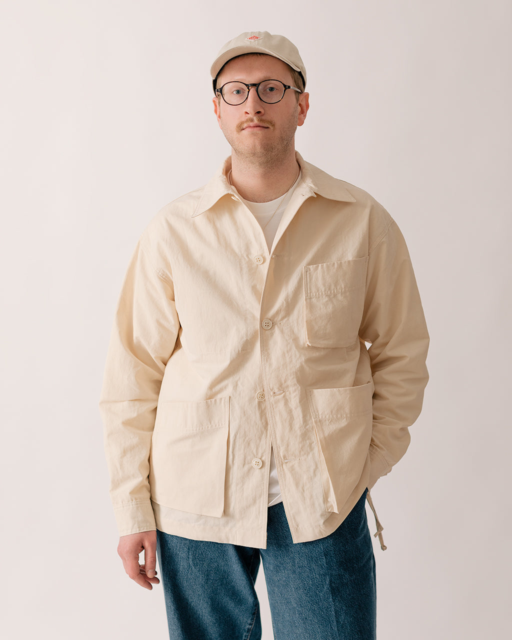 Model is 6', 44" chest, 34" waist and is wearing a size Large Jacket, a size Large T-Shirt and size Medium Jeans.