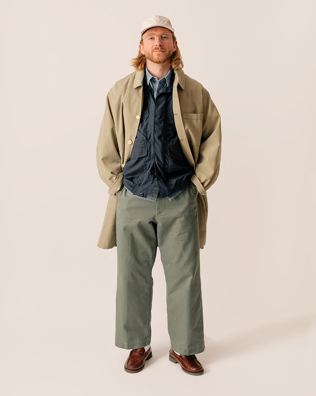 Model is 6', 42" chest, 30" waist and is wearing a size 3 Overcoat, size Medium Jacket, size Medium Shirt and size Medium Trousers.