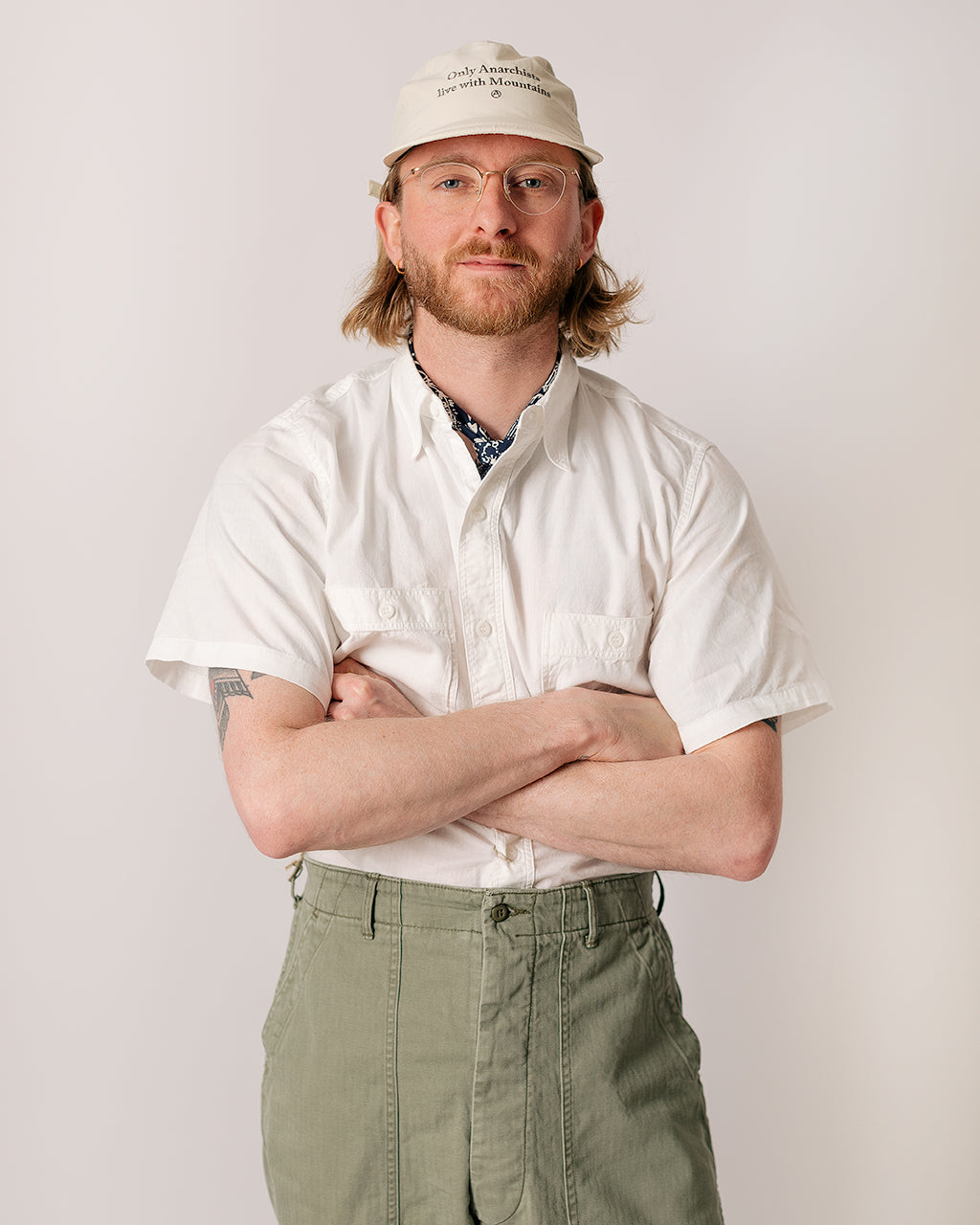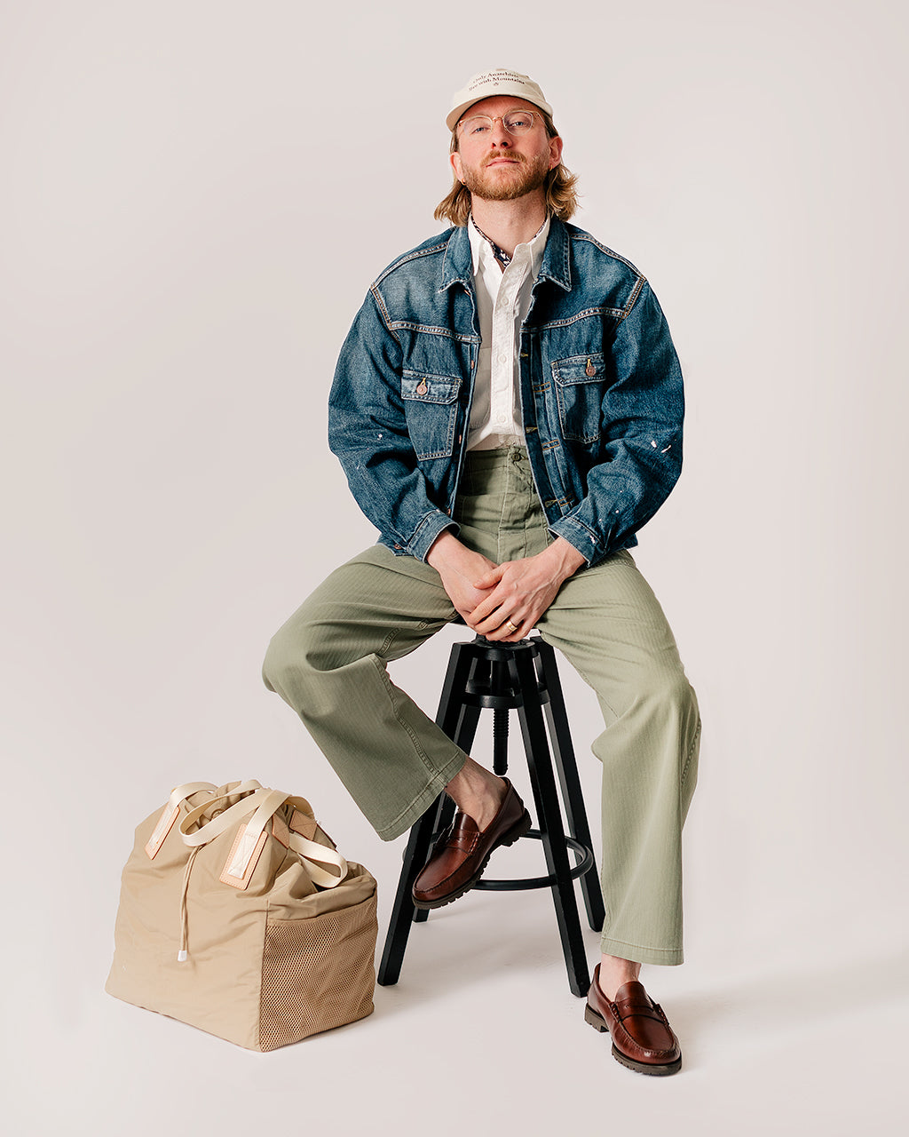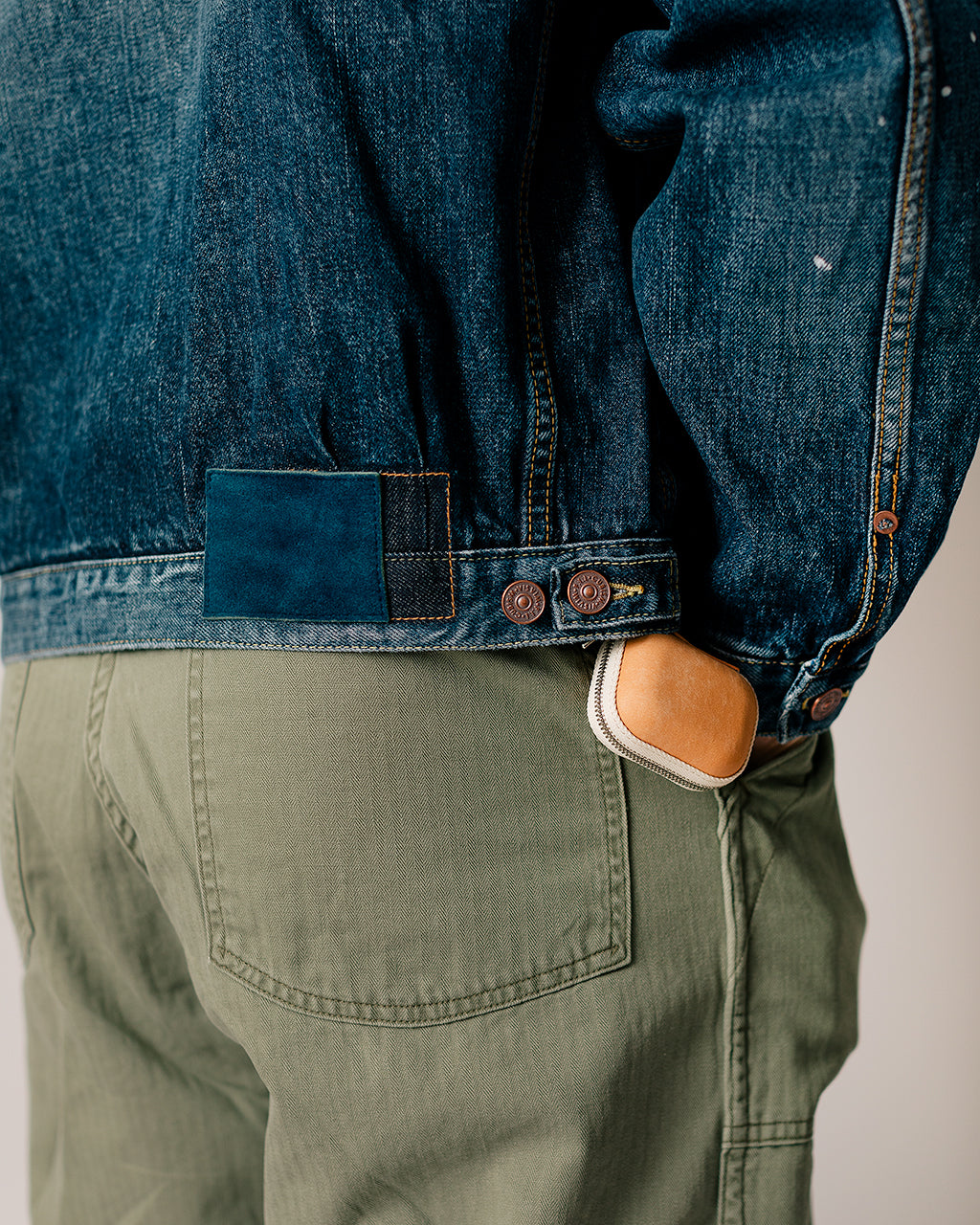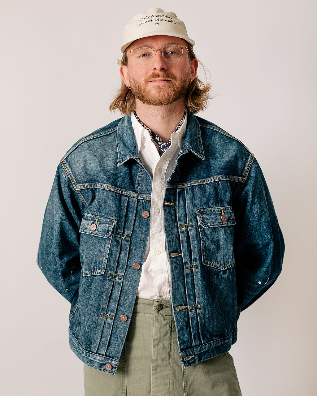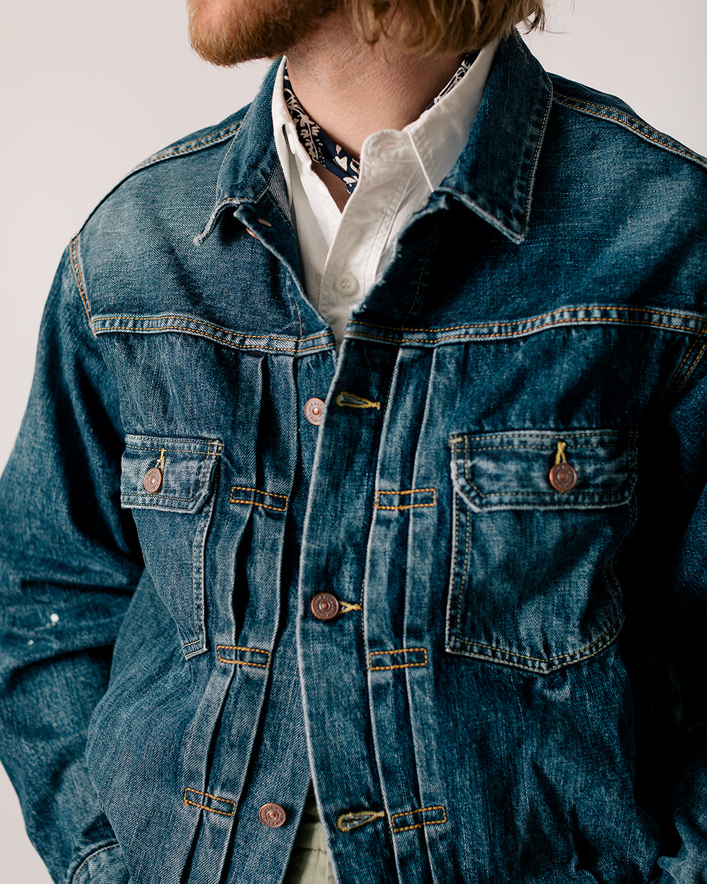 Model is 6', 42" chest, 30" waist and is wearing a size 2 Denim Jacket, a size 3 Shirt and size 2 Trousers.
