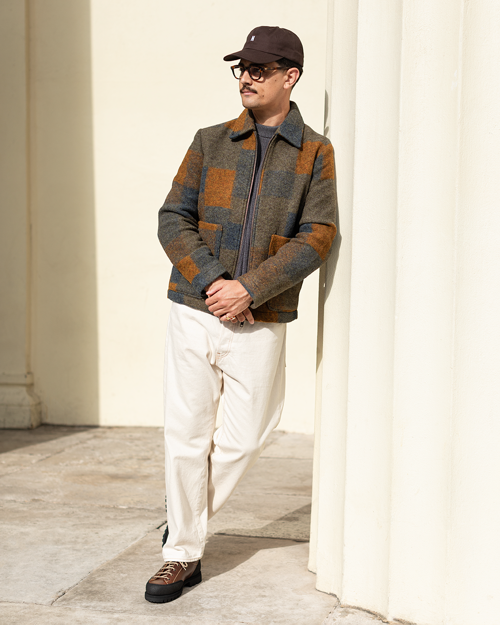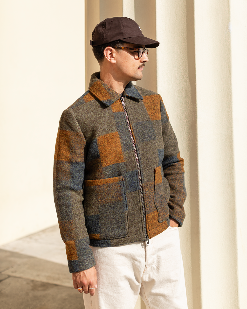The Gael Jacket features a unique boxy fit and a chunky two-way YKK zipper, crafted from premium Italian yarn-dyed checkered fabric. Each jacket is one-of-a-kind, with subtle variations in the checkered pattern due to fabric alignment during the cutting process, ensuring your piece is truly unique.